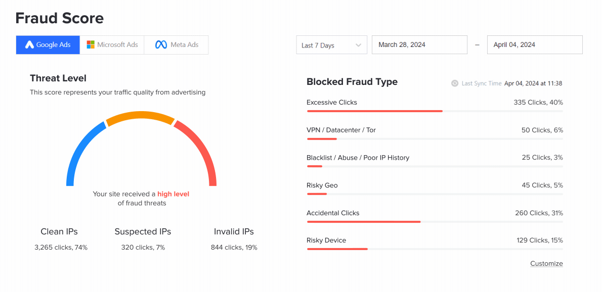 Fraud Blocker tracks the IP addresses and devices of visitors to your website to look for bad behavior, such as repetitive clicking. Once a bad IP is detected, we block them in near real-time.