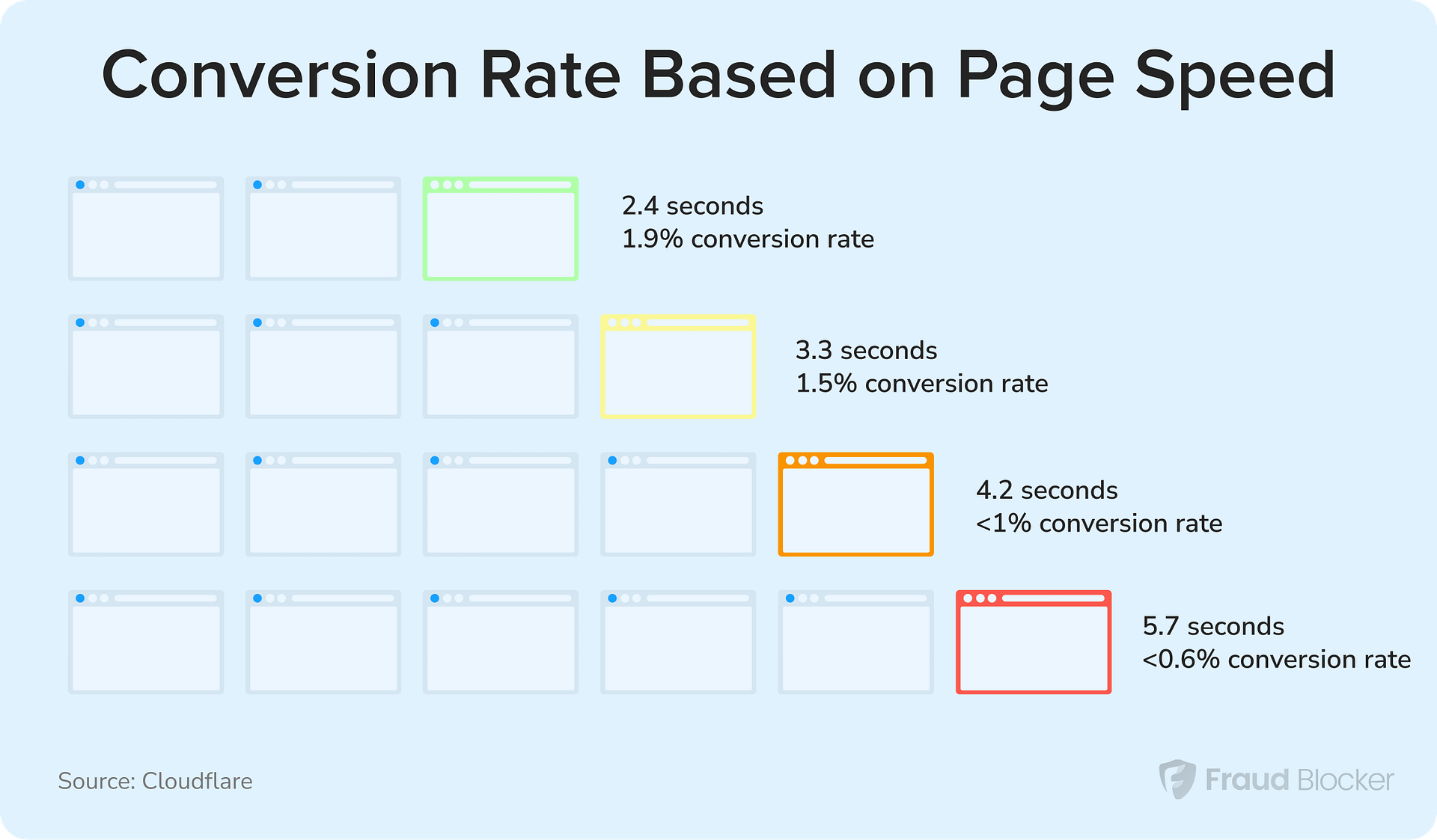 5 out of 10 visitors will abandon a webpage if it doesn’t load within the first few seconds, derailing conversions before they even begin. Marketers must ensure their pages load quickly, as even a one-second delay can reduce conversion rates.