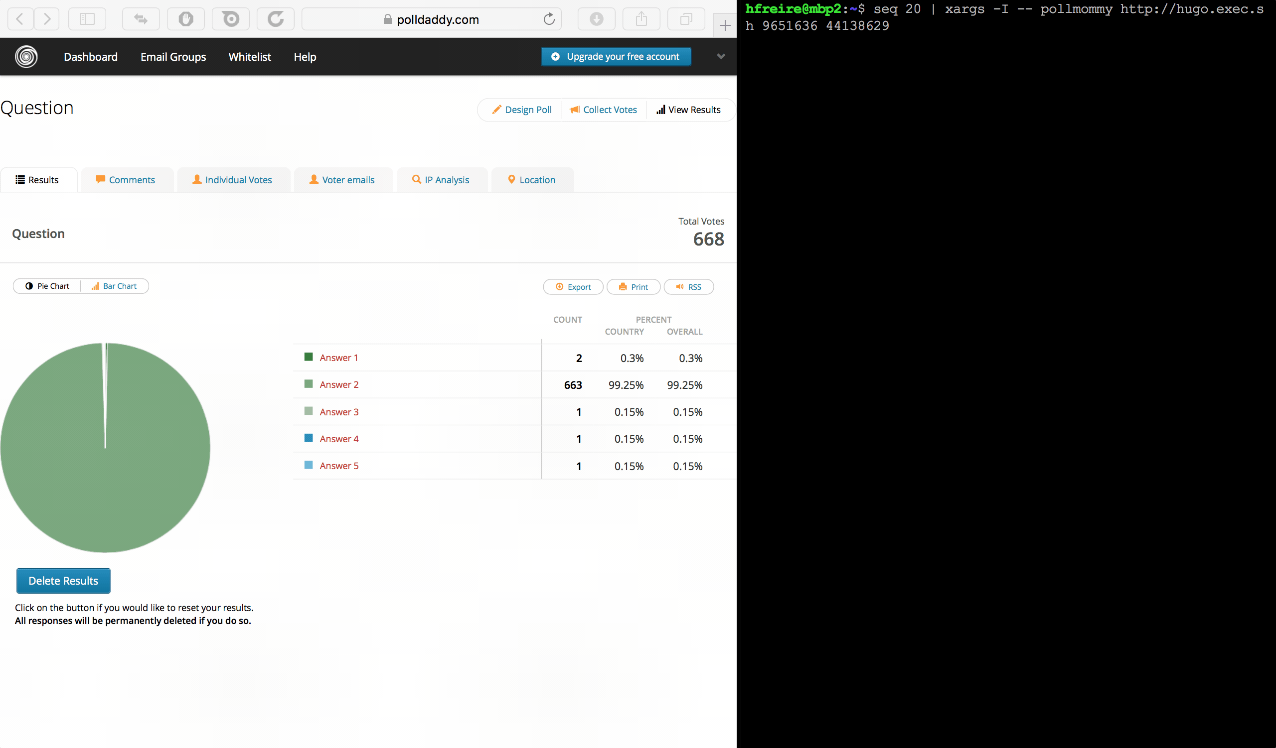 Below is a poll bot in action. In this case it’s being used to automatically vote on any poll using PollDaddy’s leading polling platform (now “CrowdSignal”). This polling software is used by BBC, Microsoft, Forbes, and others.