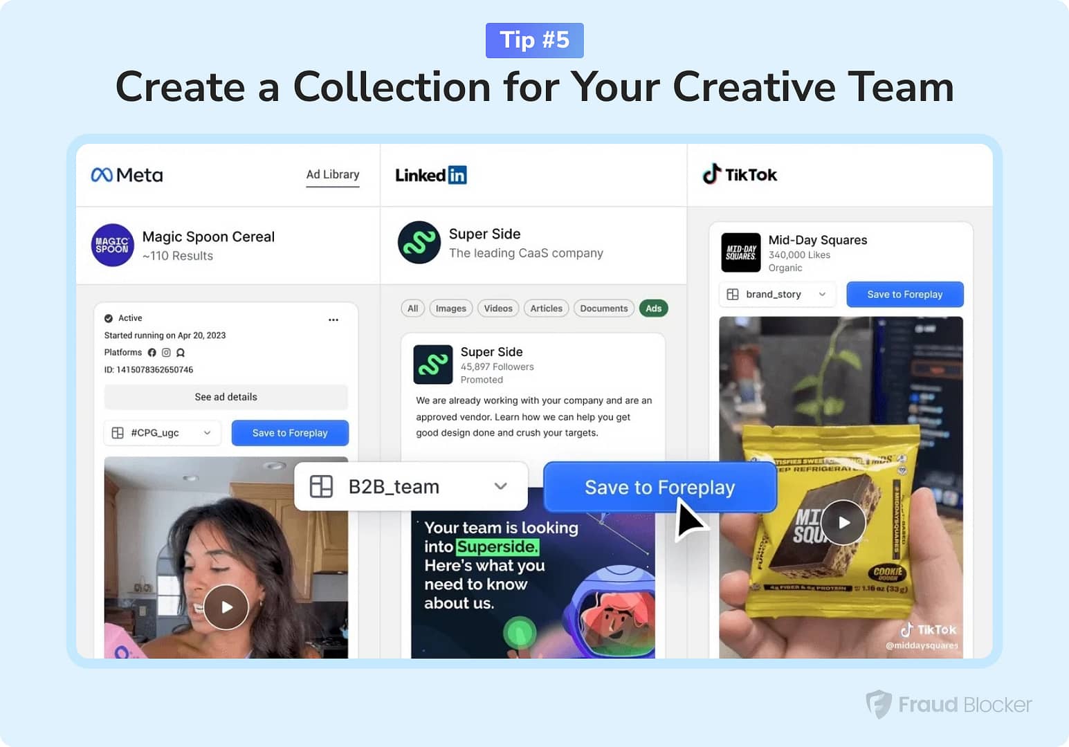 Tools like Foreplay and Magic Brief let you save and organize ads directly from the Facebook Ads Library so your team can reference them during brainstorming. They also make it easier to save ideas for future reference.