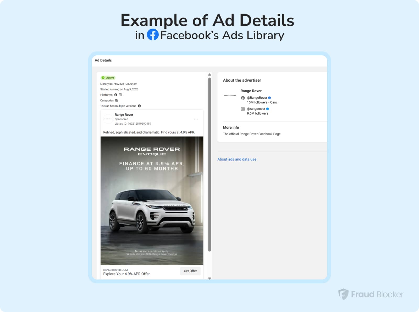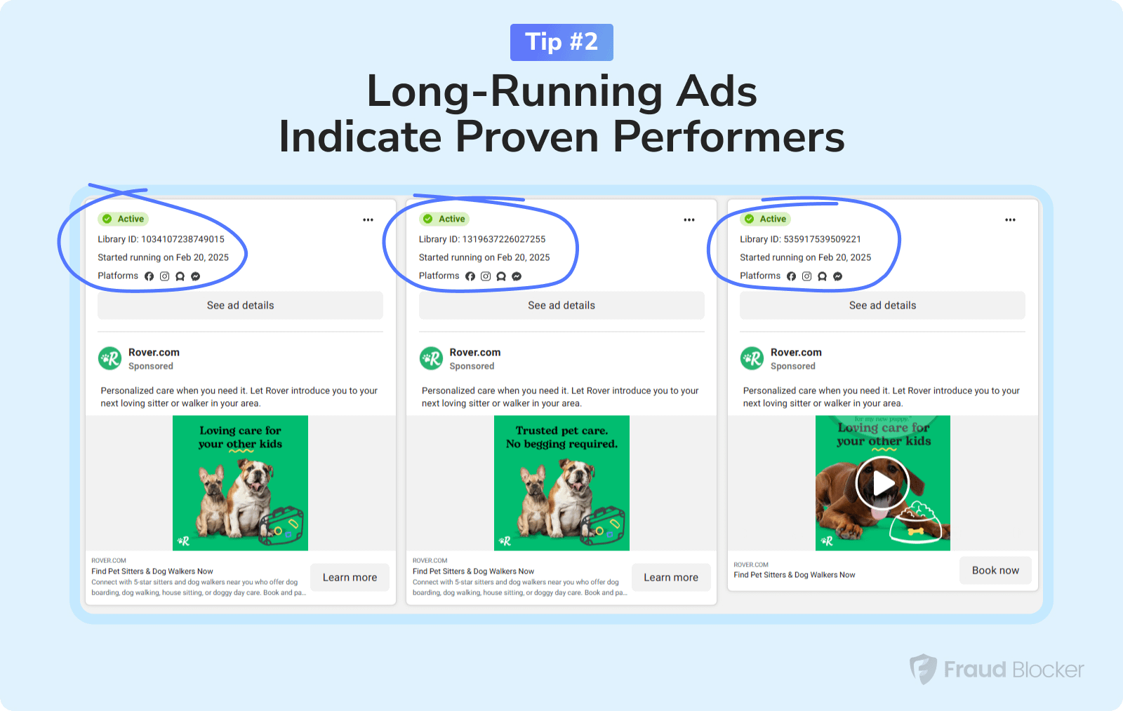 Active or inactive status: Active ads show what’s live right now; inactive ads can reveal past promotions or seasonal campaigns.