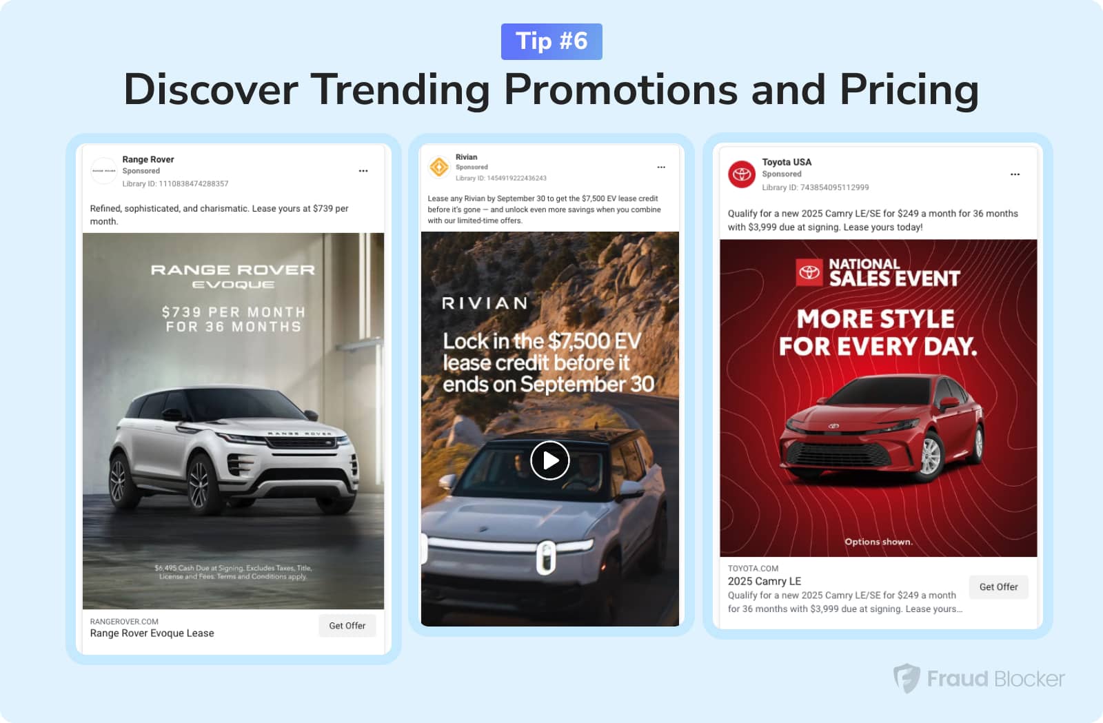 Look at the CTAs that show up again and again in your industry. “Shop Now,” “Sign Up,” and “Learn More” might sound basic, but if they appear across multiple top advertisers, they’re likely proven winners.