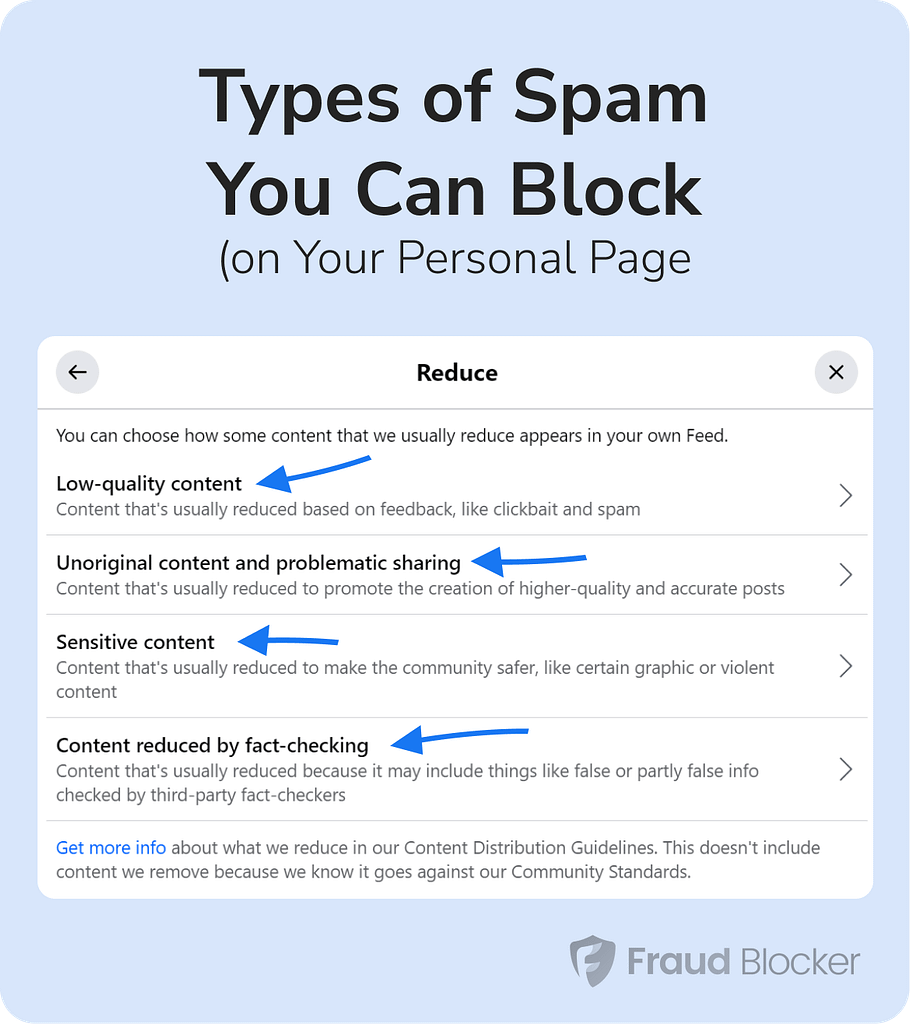 Here are the 4 types of spam and bot filters available for your personal Facebook account: