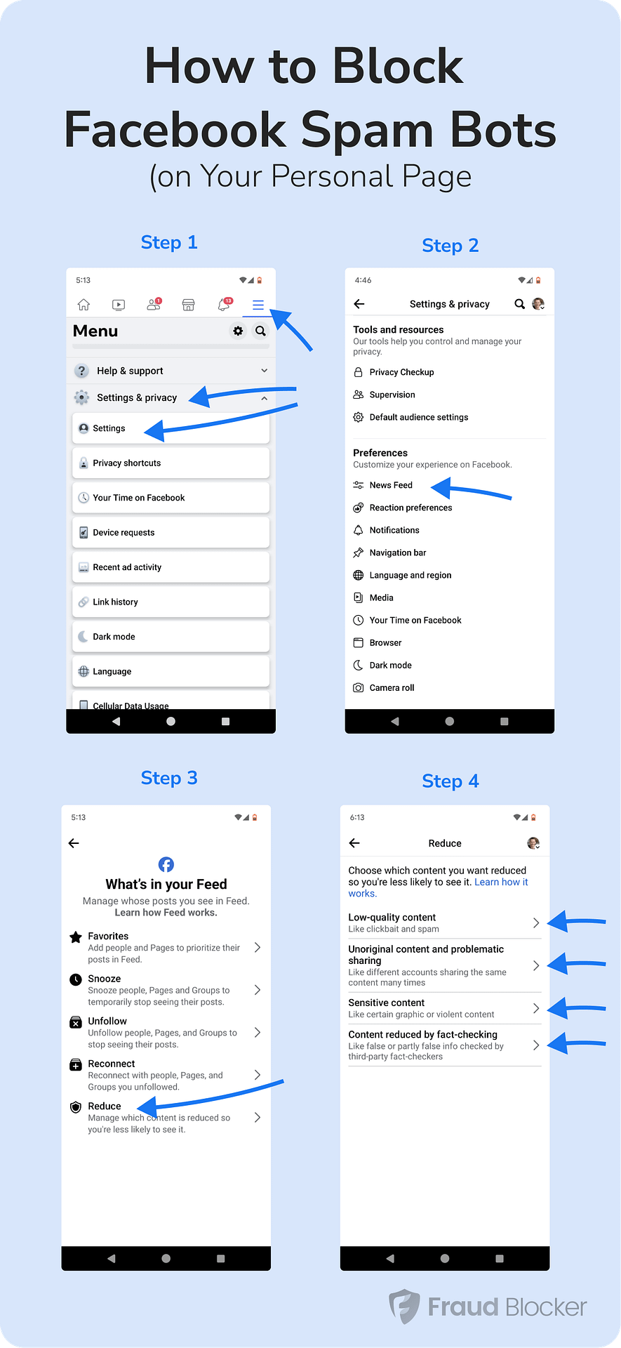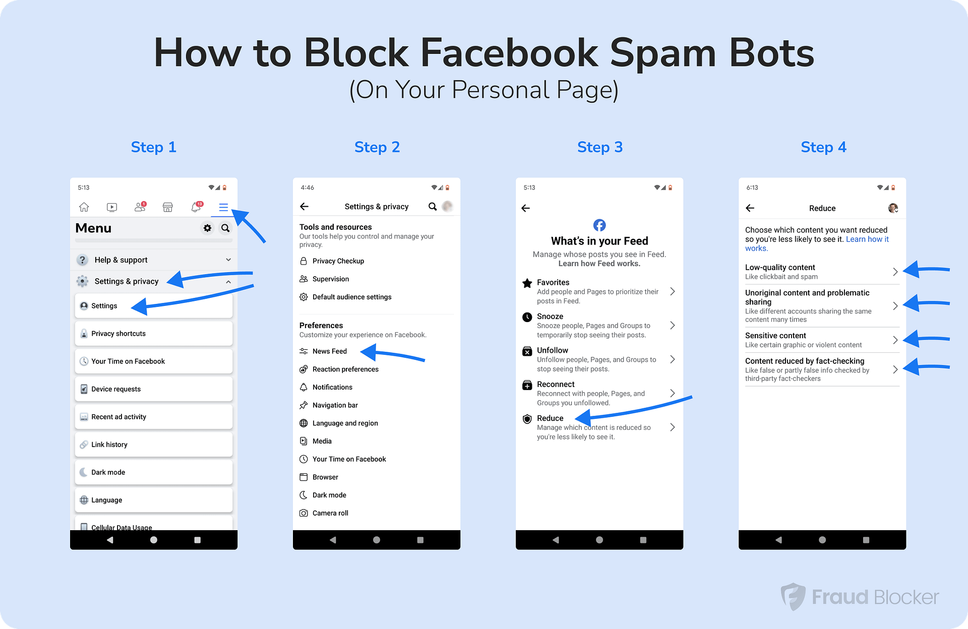 - Report Bots: Manually reporting bots helps Facebook identify and remove them.