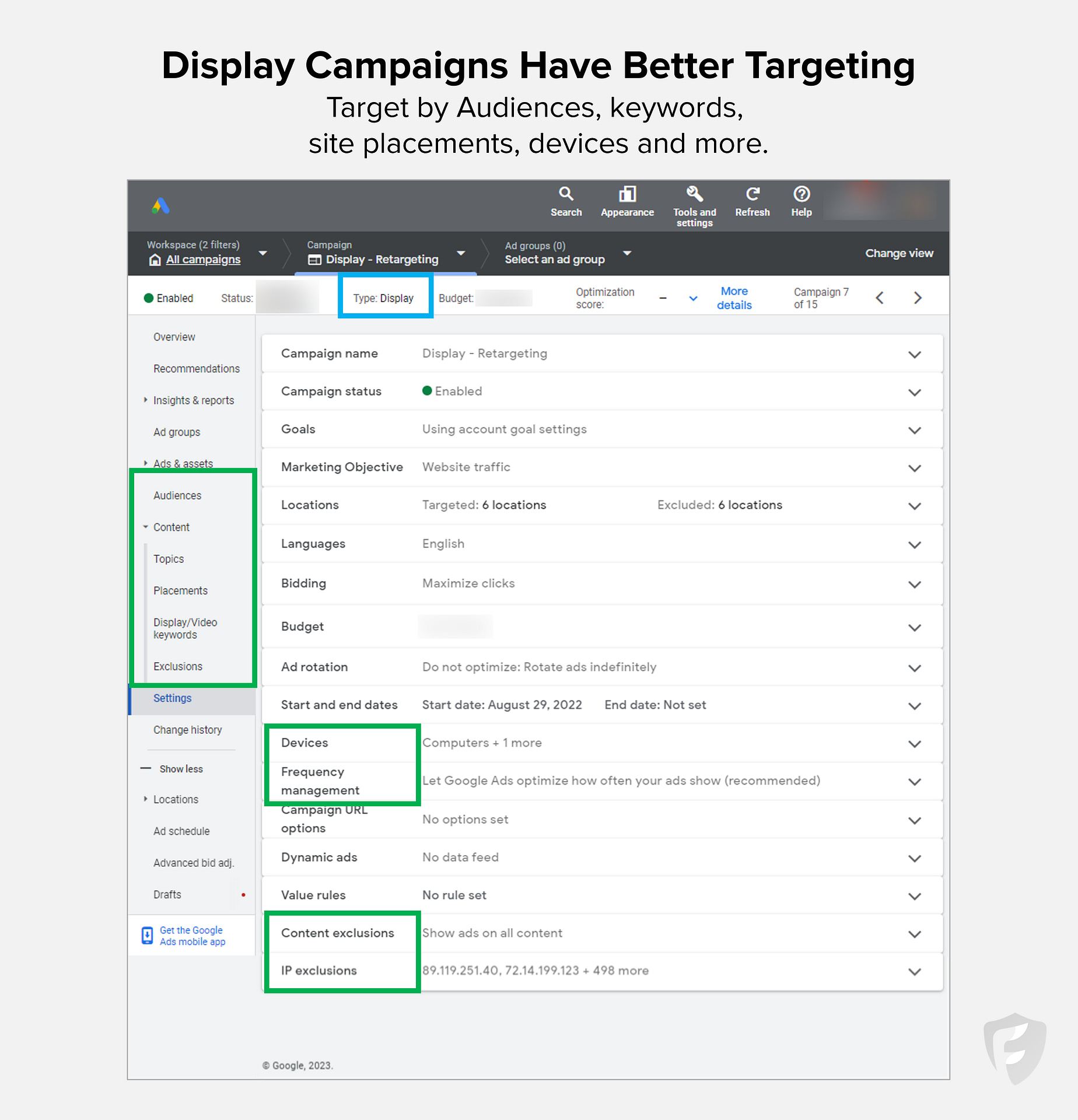 2. Limited targeting options (e.g. no campaign level IP exclusions!)