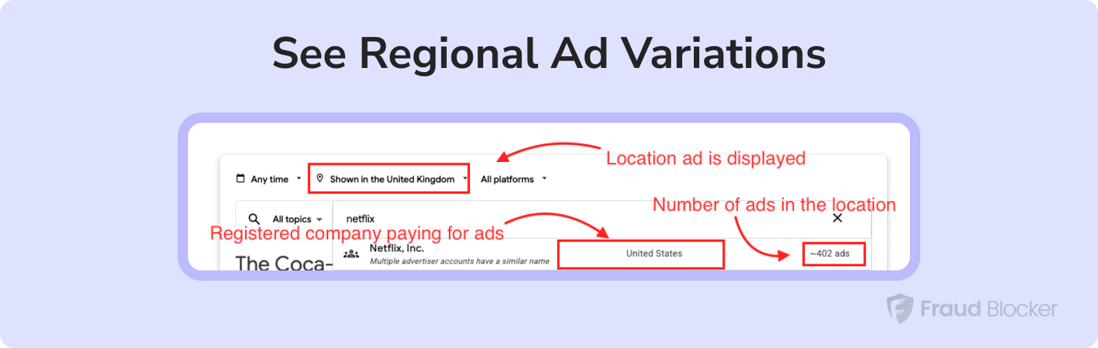- View verified advertisers: If an advertiser or website hasn’t completed Google’s advertiser verification, their ads won’t appear in the Transparency Center.