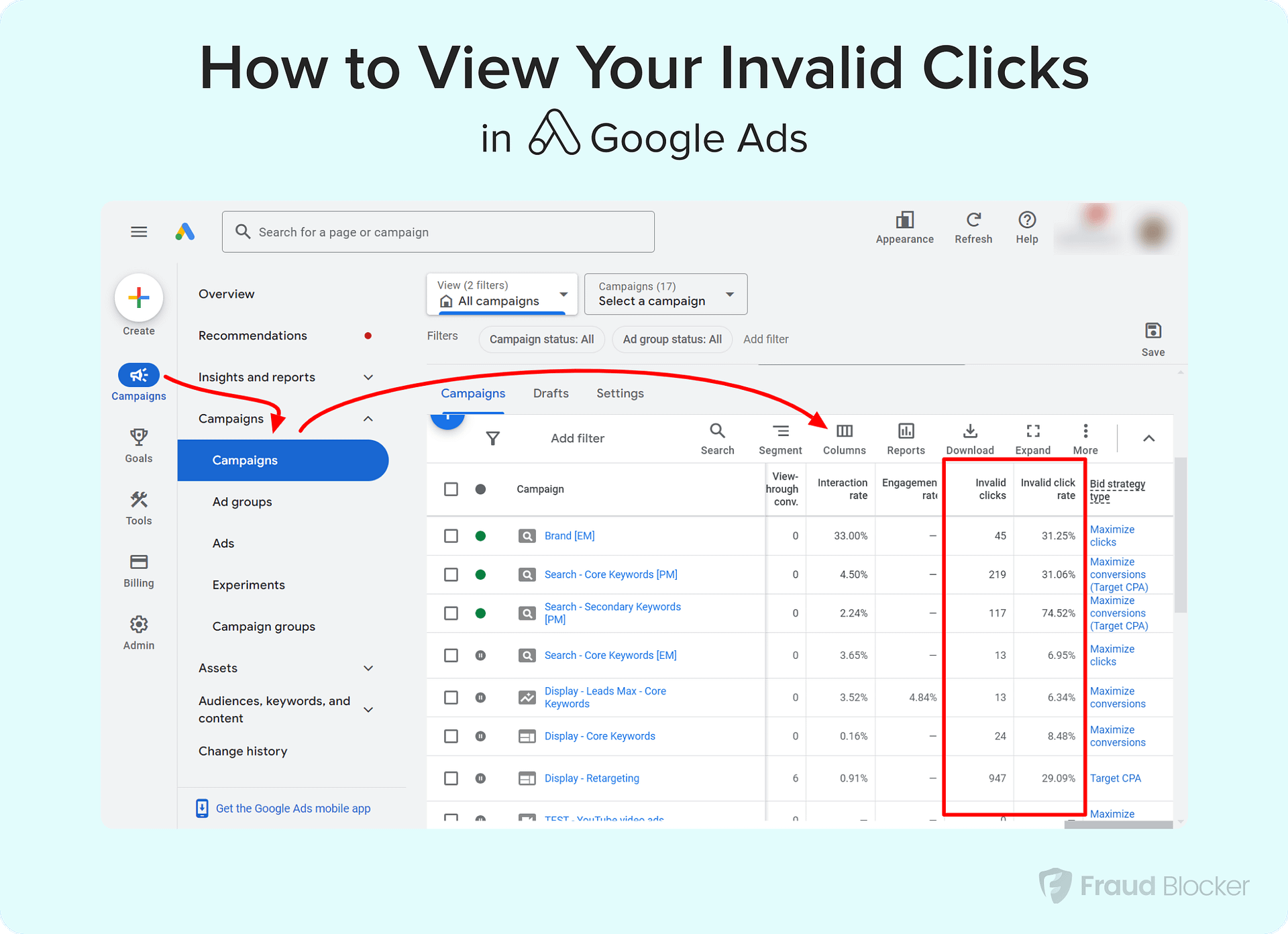 You can view the amount of “invalid clicks,” which includes click fraud, detected by Google Ads in your reports. Here’s how: