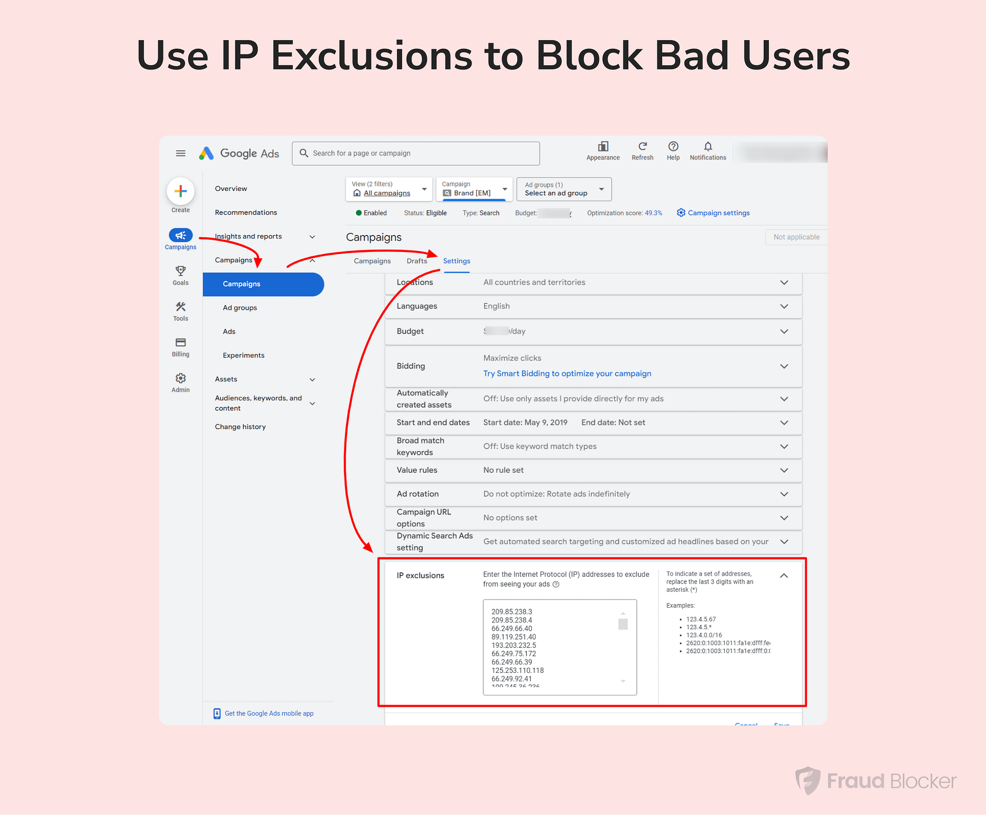 If your ads keep getting clicks from people who aren’t real customers (competitor clicks, bot traffic, or even your employees), you’re paying for nothing. That’s why IP exclusions are so important. Here’s how you can set that up: