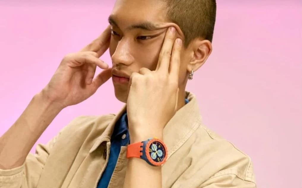 Swatch, a Swiss watch brand, promoted its ESSENTIALS collection with an image of an Asian male model pulling the corners of his eyes, a gesture widely recognized as a racist stereotype.