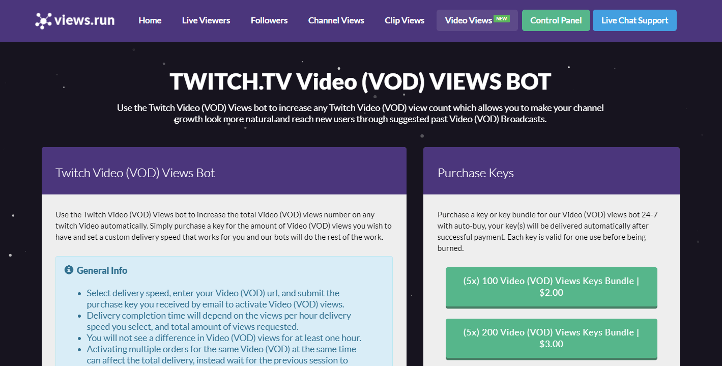 Here’s a service that can help boost Twitch views along with bots to increase followers, chatters and overall channel views.