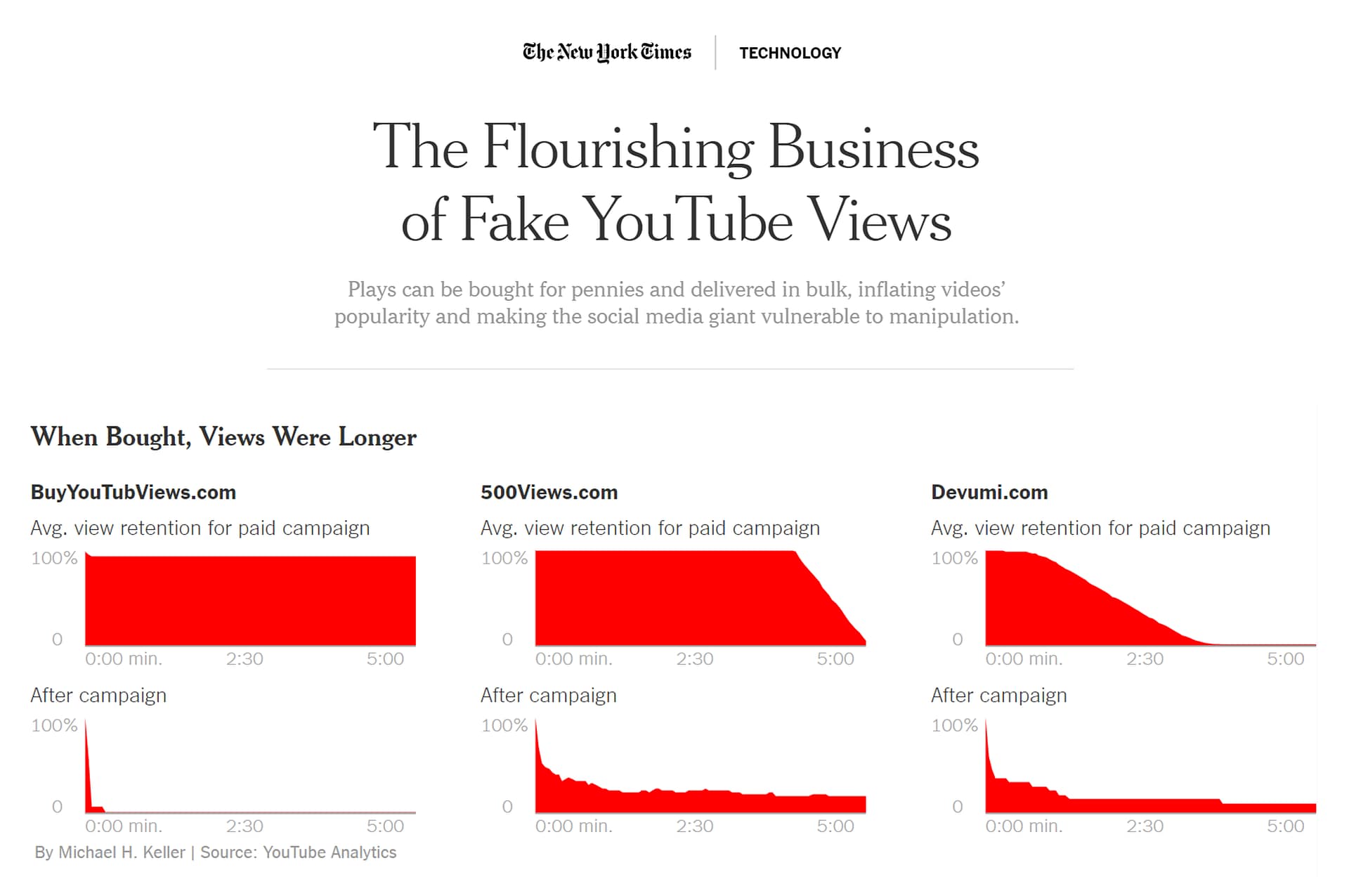 The New York Times published a revealing report called “The Flourishing Business of Fake YouTube Views” in late 2018.