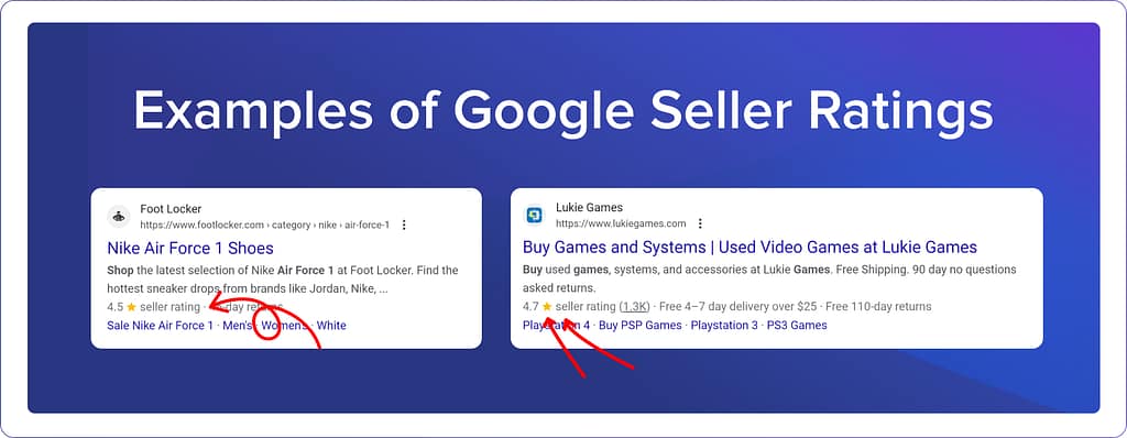 Google Reviews: Google Seller Ratings can also appear on a business’s Google Reviews page. This page displays ratings for businesses, including Google Seller reviews. Potential customers can access a business’s Google Reviews page by searching for the business on Google or clicking on the reviews link in the Google Knowledge Panel.