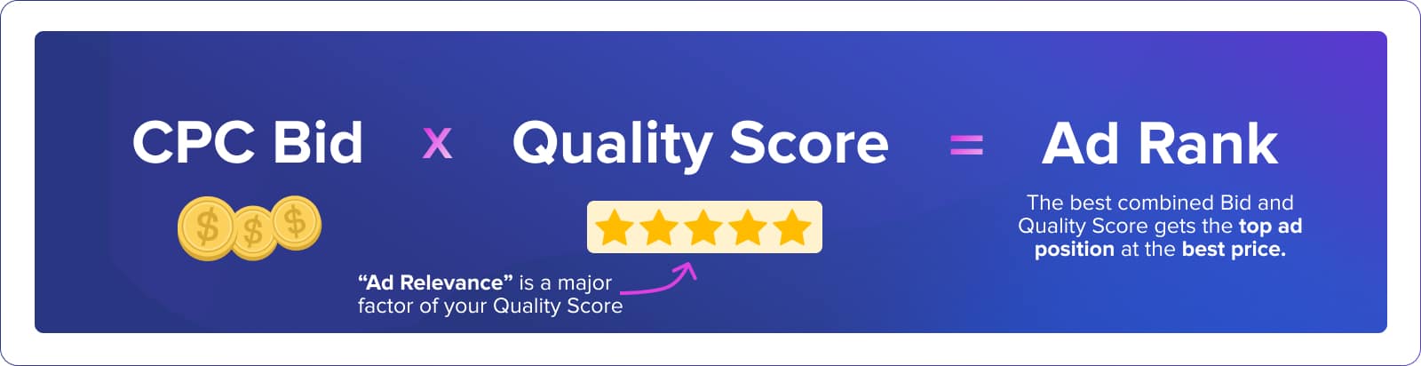 These factors (and more) are reflected in your Quality Score, a metric that combines ad relevance, expected click-through rate (CTR), and landing page experience. A higher Quality Score signifies better ad relevance, which can lead to lower costs and better ad placement.
