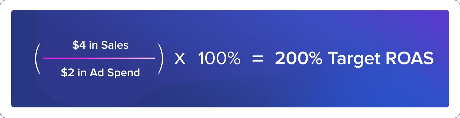 ($4 in sales ÷ $1 in ad spend) x 100% = 400% target ROAS